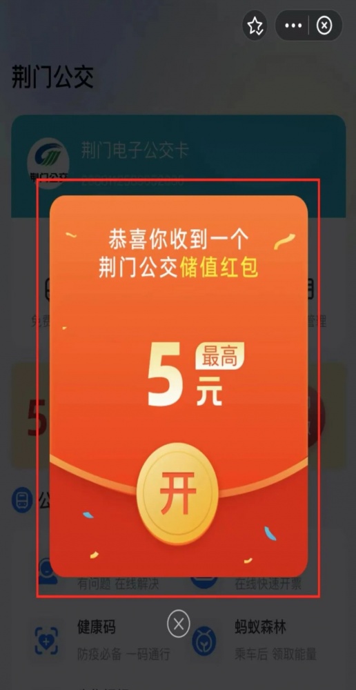 02點擊“荊門公交”,領取“儲值紅包"后點擊【去優(yōu)惠充值】,完成優(yōu)惠儲值