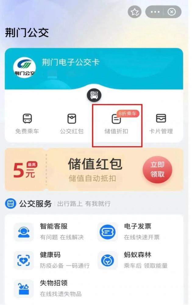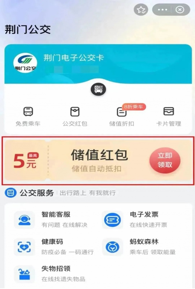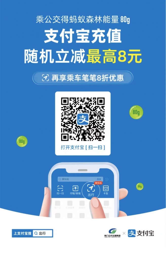 荊門市民可在支付寶上搜索“荊門公交”首充儲值最高可減8元。每個用戶每月可享受一次儲值優(yōu)惠。充值成功后,使用【荊門電子公交卡】刷碼,乘車享筆筆8折優(yōu)惠。更多內(nèi)容,詳見下文~