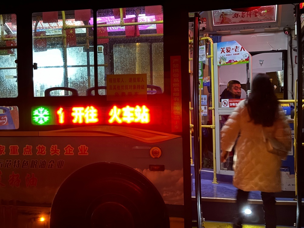 圖/雨夜時(shí)的末班車(chē),顯得格外冷清,但面對(duì)乘客時(shí)的笑容,可以消除寒冷